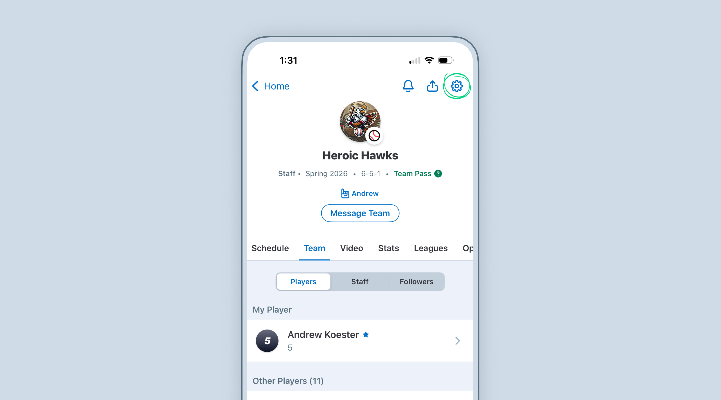 All team members (Staff/ Family/ Players/ Fans) will see the option to update their Game Alerts for the team as well as Schedule Sync the team calendar with their personal calendar.