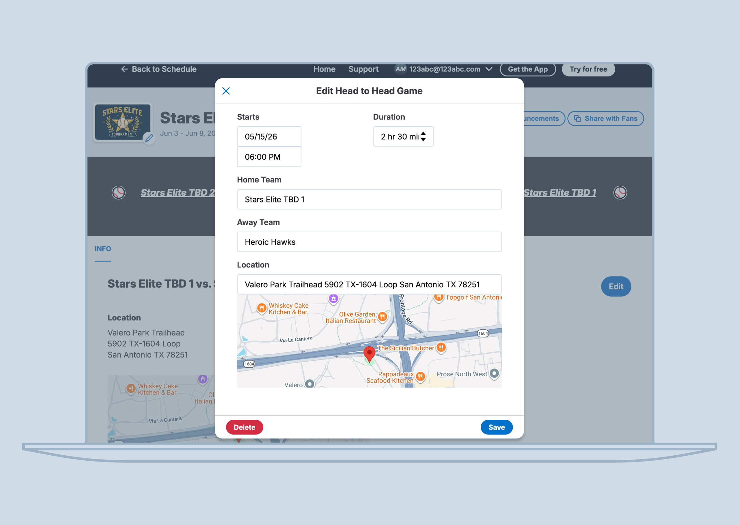 As things progress and matchups are set, edit each game and pick the correct team from the drop-down. Save. The changes will now be reflected on your schedule and each individual team's calendar.