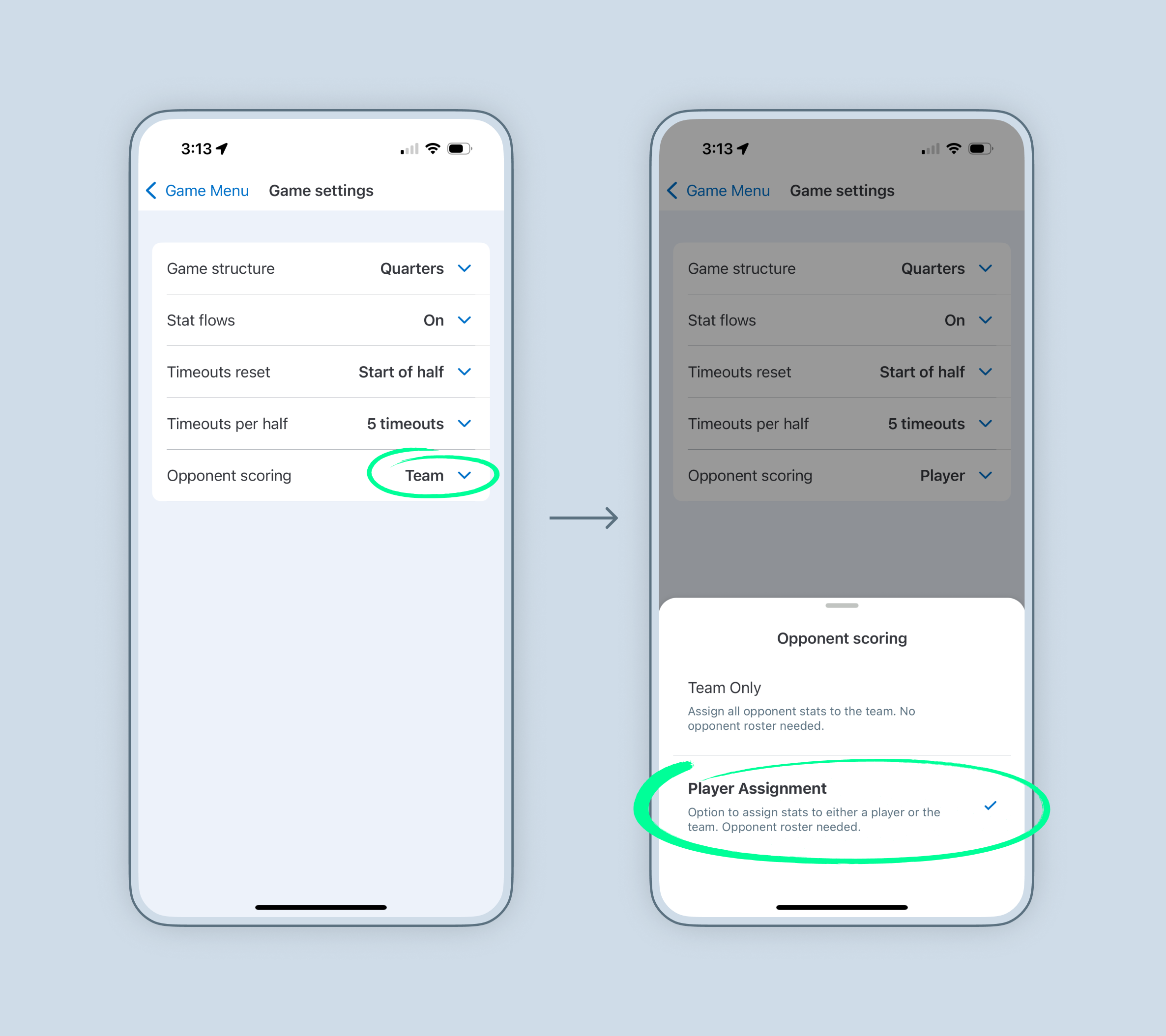 - While scoring, use the Team toggle in the Game Settings Menu to choose the level of detail you'd like to track for opponents.