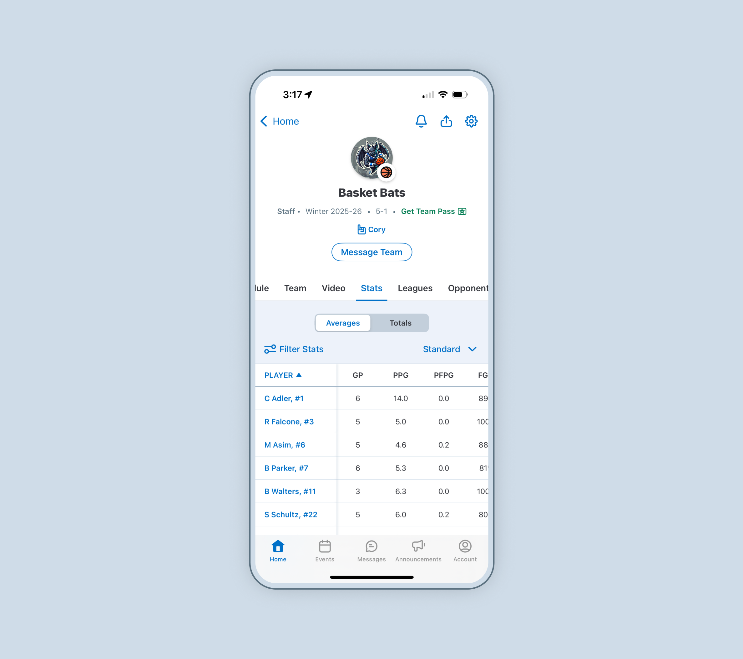 - Tap the drop-down on Standard to select and view Advanced Stats.
