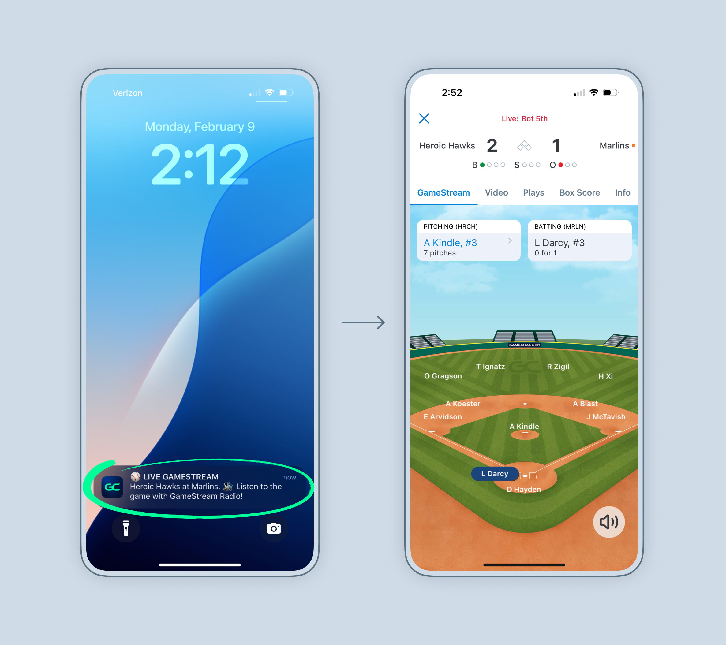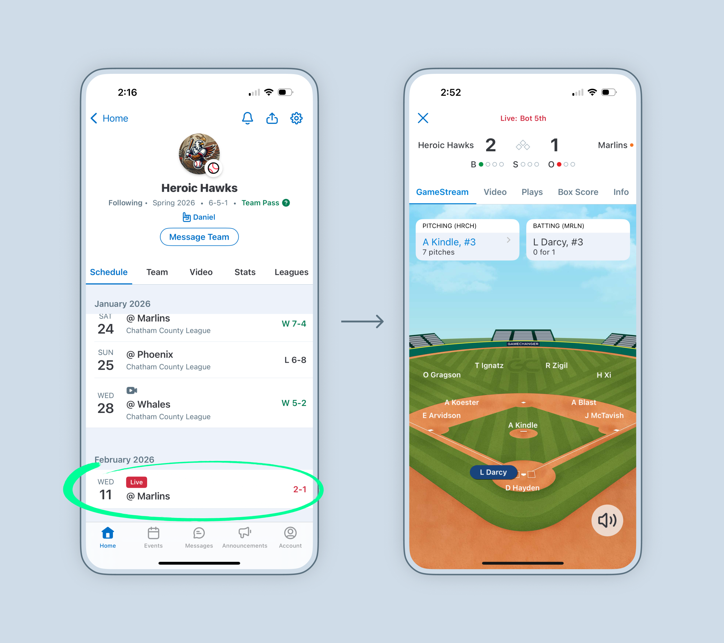Family members and fans can view play updates, stats, scores, and more via the live GameStream. Please note that the GameStream does not include live video streaming.