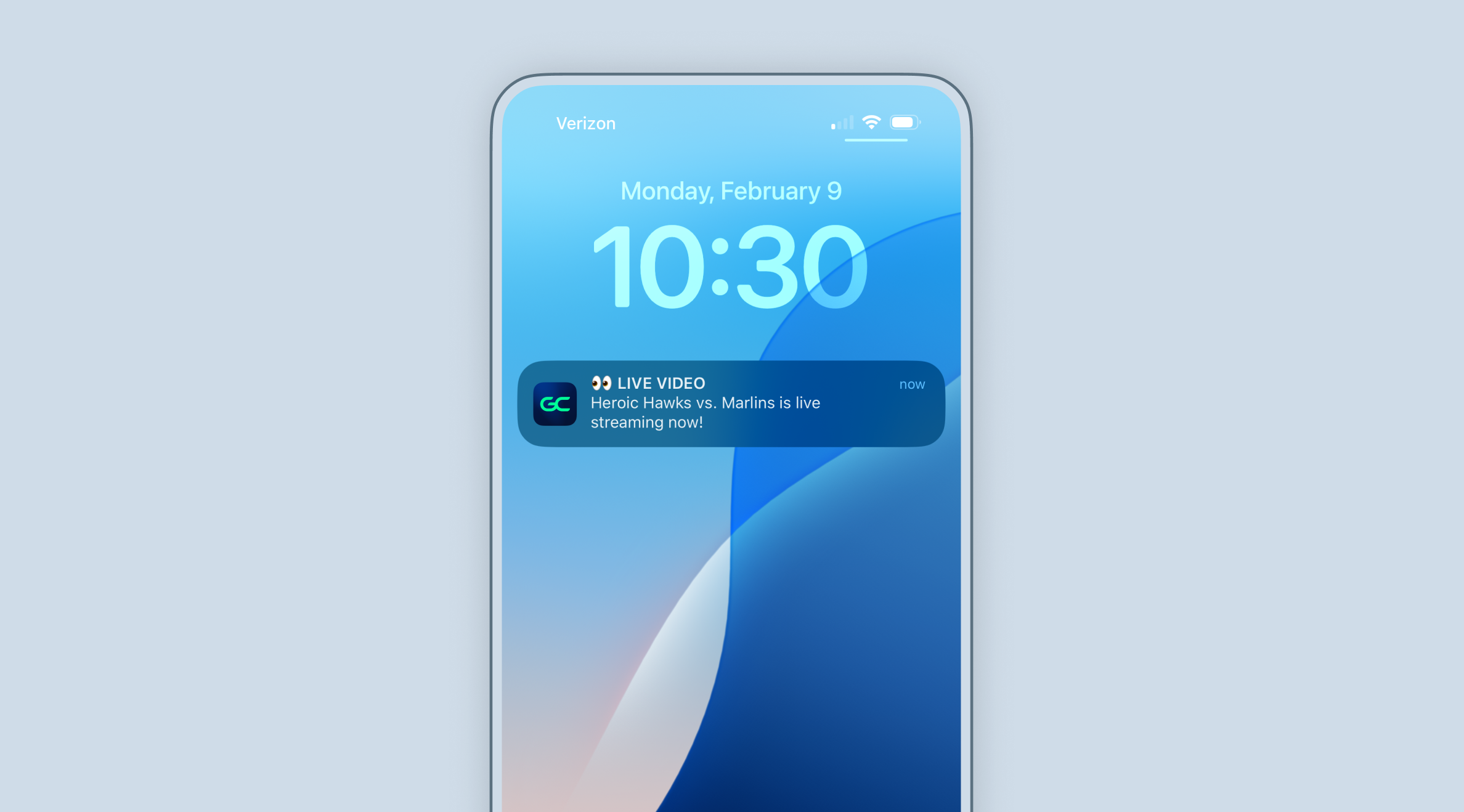 From Push Notification: When your team begins streaming a game, you will receive a push notification on your device. Tap the notification to bring you right into the team’s stream.