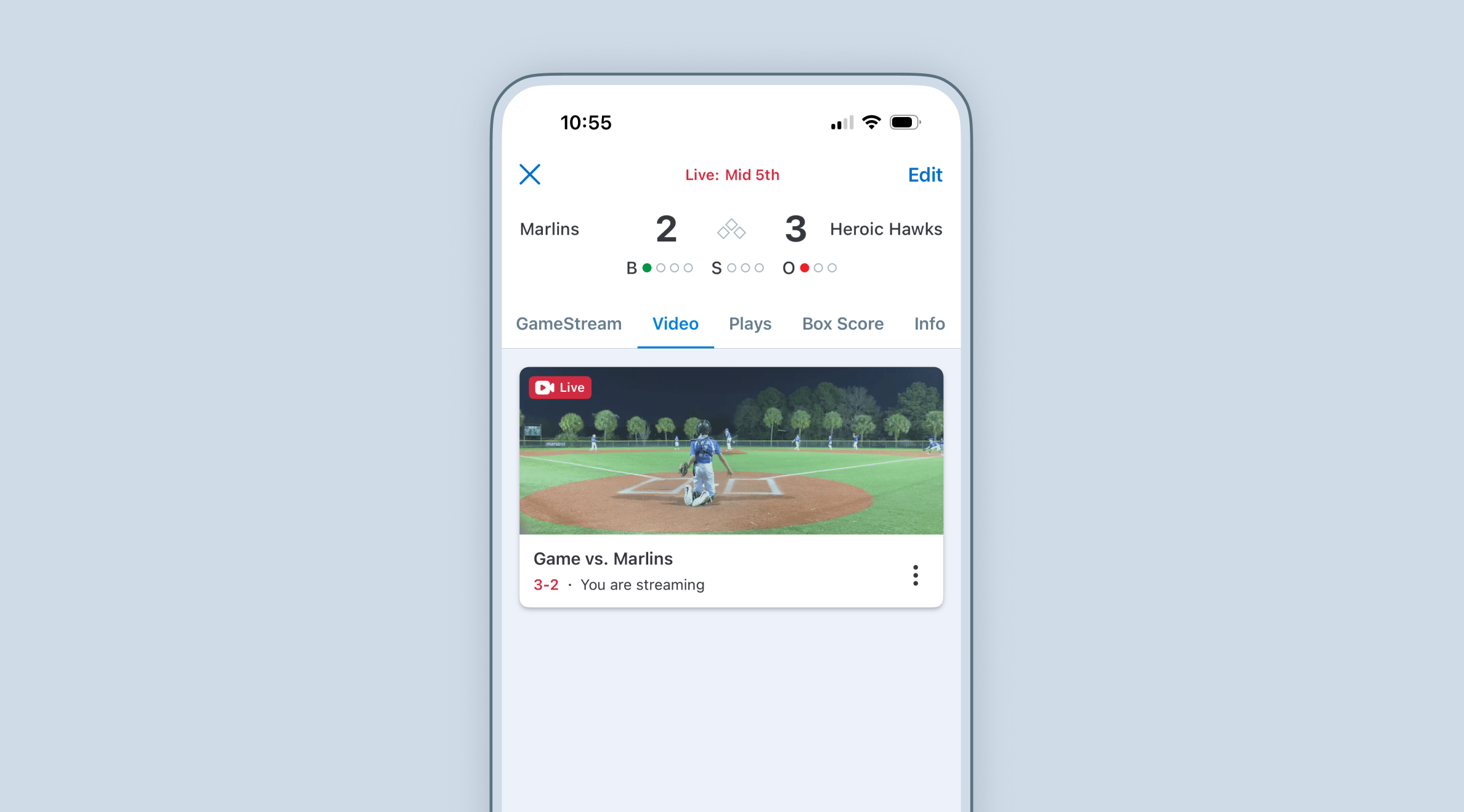 With just a few taps, you can watch live videos of your favorite teams playing from within the GameChanger app.