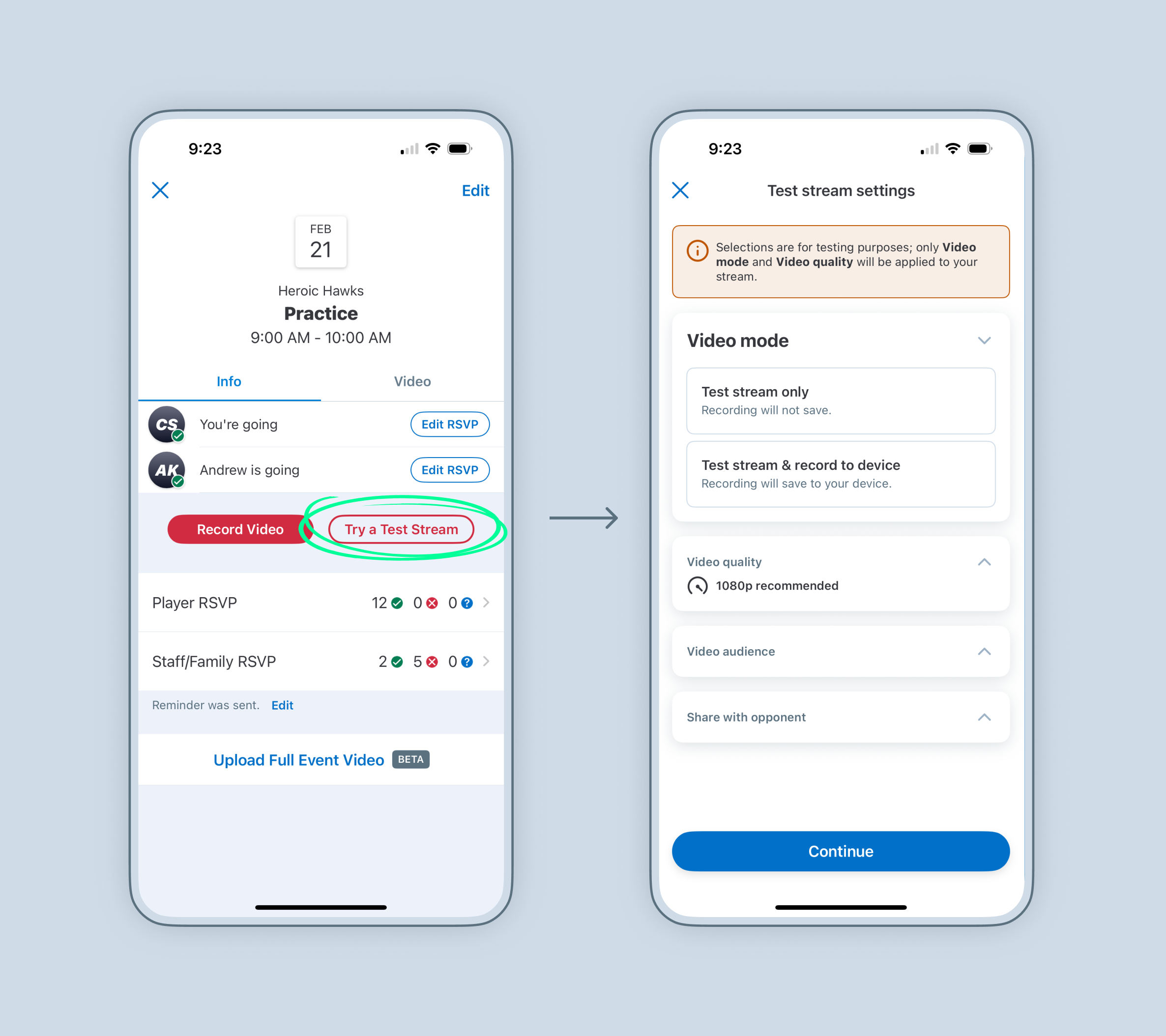 Whether you're a seasoned streaming pro or setting up for the first time, getting ready for game-day just got easier. Test streaming is now available on both iOS and Android!