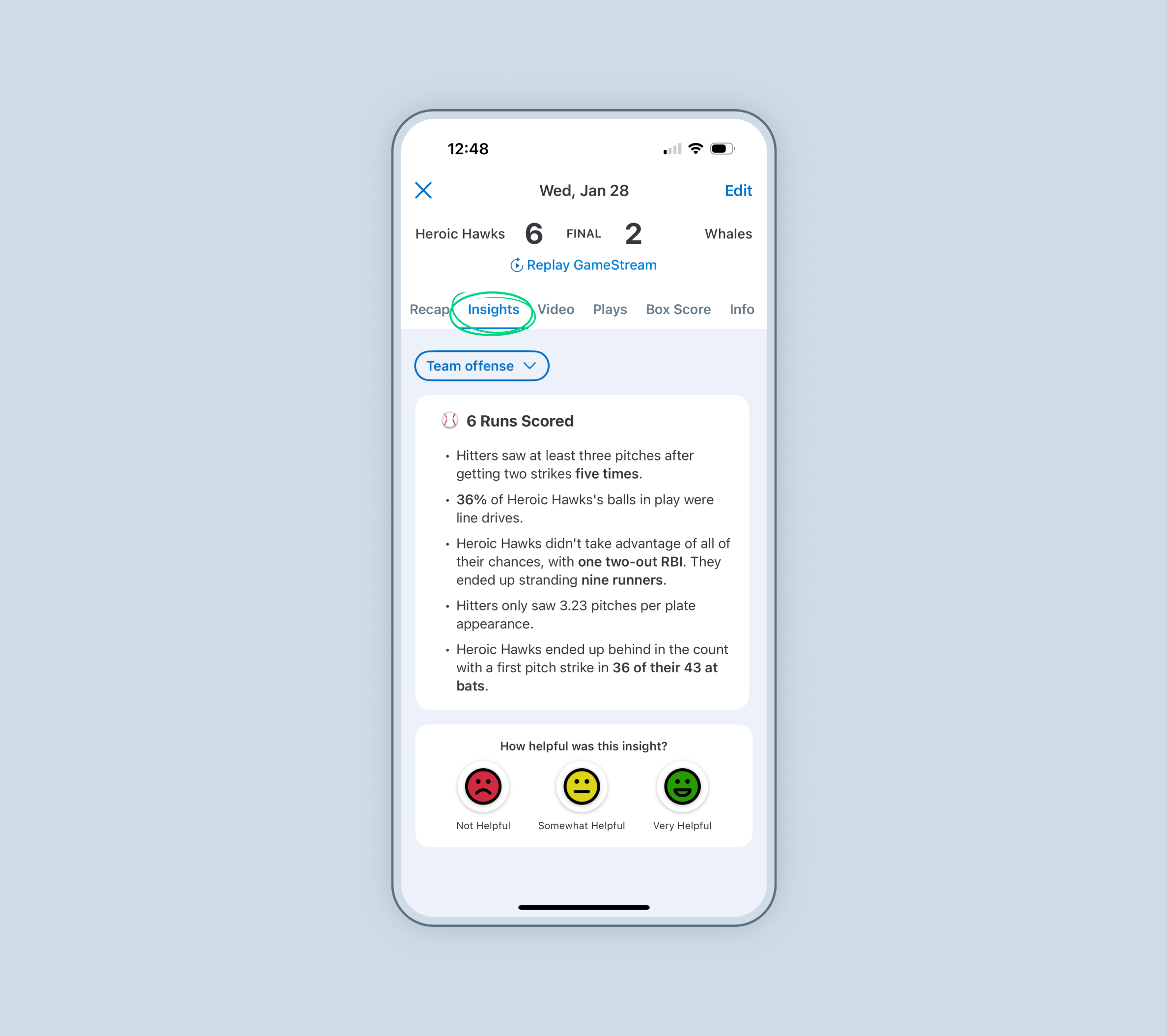 Unlock deeper coaching feedback with the new Insights tab (Beta). Baseball and softball Staff Members can now see game-changing stats like two-strike hits allowed and clutch play impact, helping highlight the moments that mattered most.