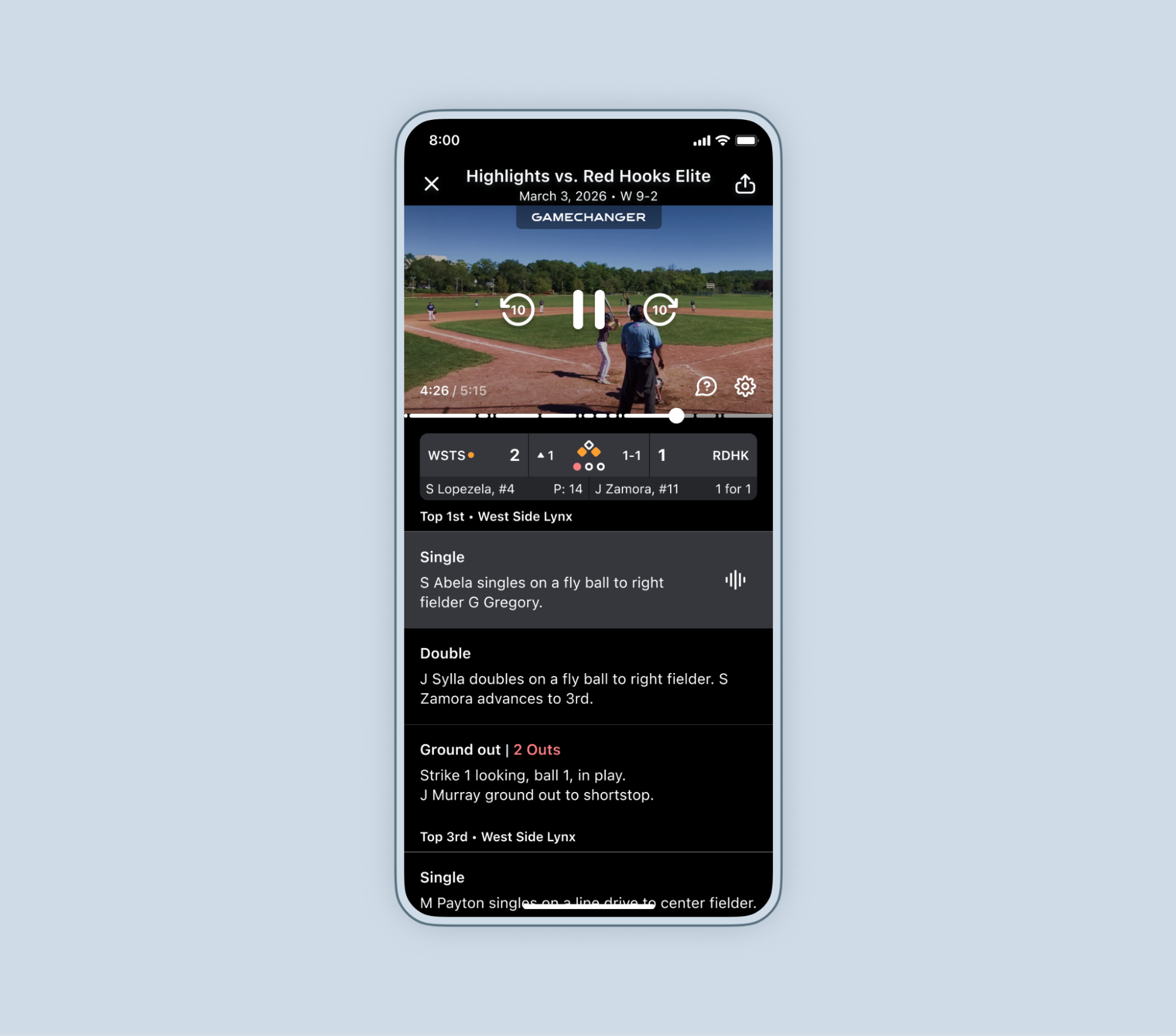 Game Highlight Reels are an automatically curated list of the most impactful moments of a game. For baseball, softball, and basketball teams, a highlight reel is crafted from the game's scoring data and live stream video pulling in the highlight clips of the biggest impact plays of the game.