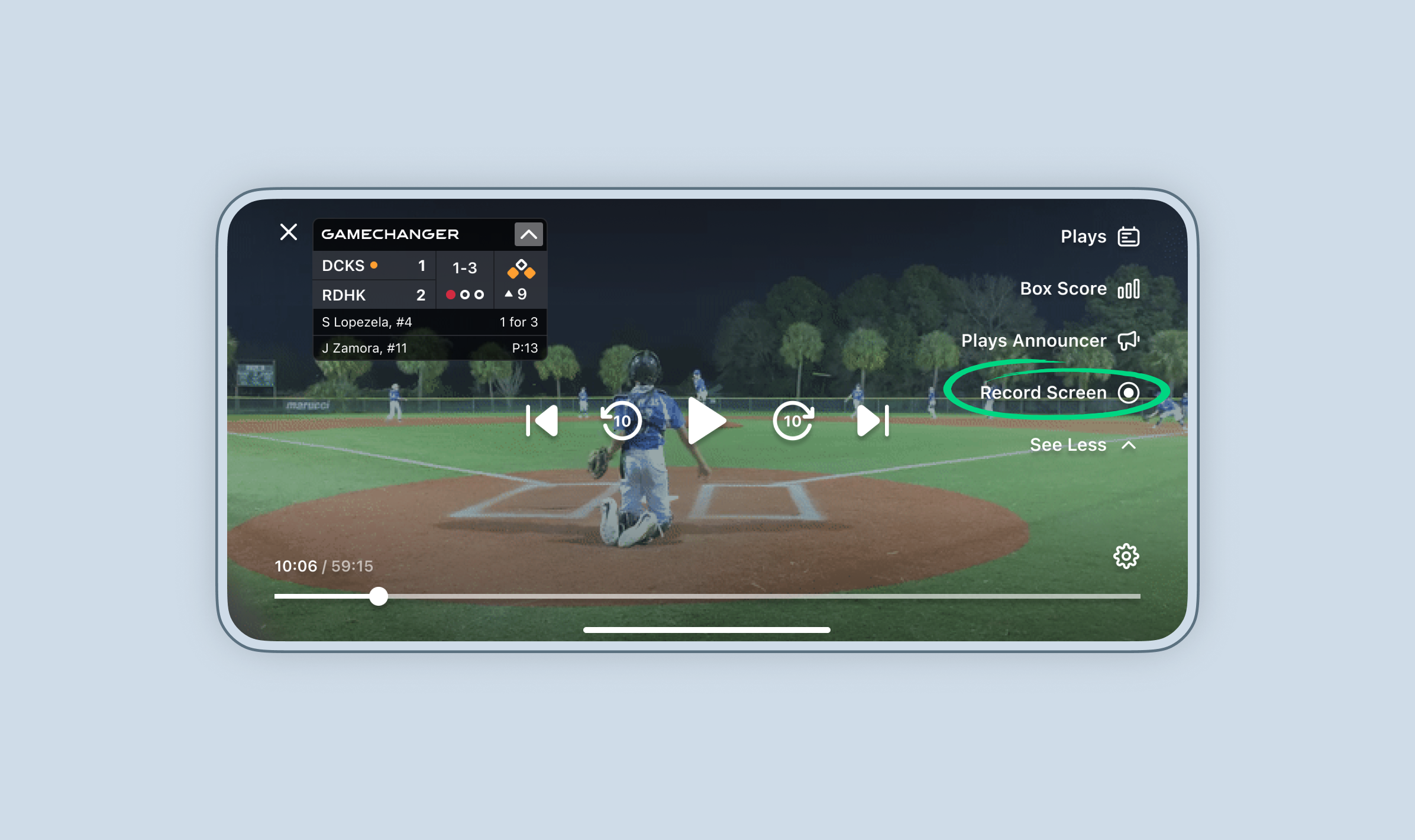 GameChanger has made it easier than ever to grab clips and snippets of your favorite moments within archives. Simply navigate to that perfect home run or amazing save and tap Record Screen.